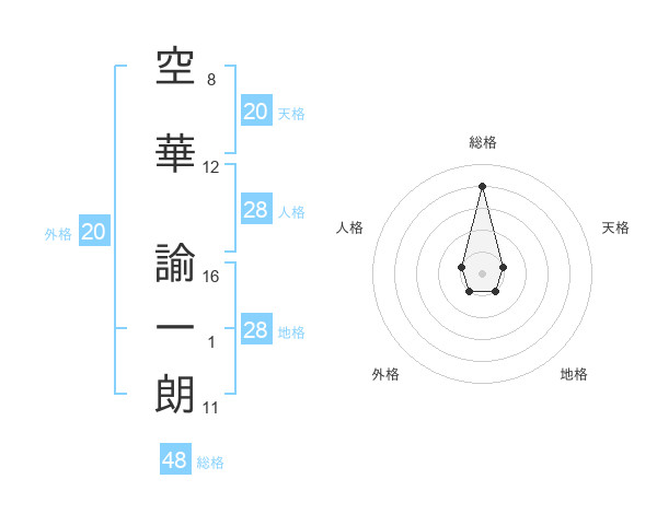 空華 諭一朗さんの天格は20画の1点!