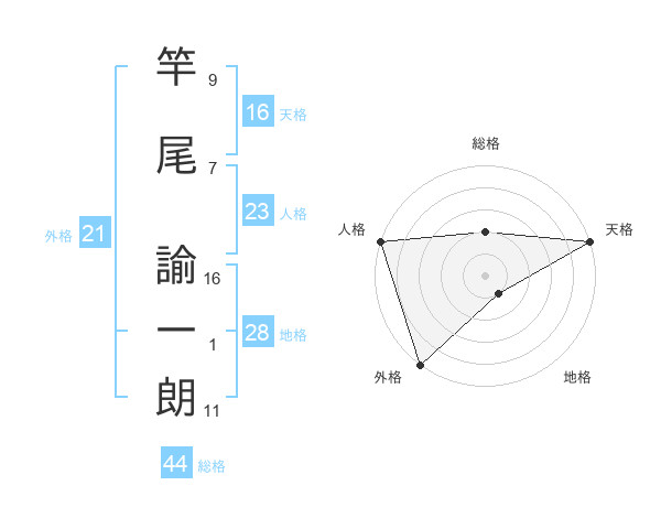 竿尾 諭一朗さんを姓名の画数から五運を鑑定