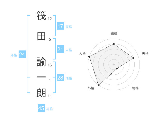 筏田 諭一朗さんを姓名の画数から五運を鑑定