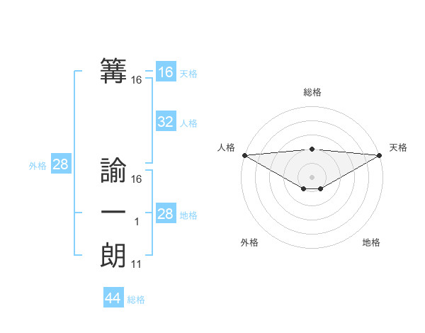 篝 諭一朗さんの天格は16画の5点!