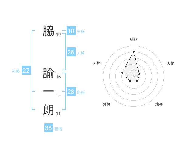脇 諭一朗さんの総格は38画の4点!