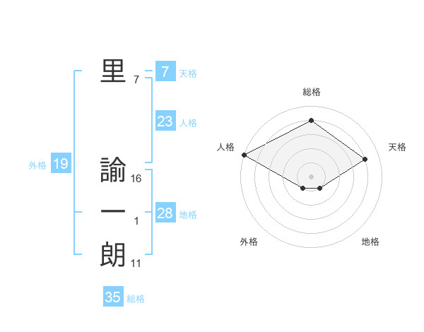 里 諭一朗さんを姓名の画数から五運を鑑定