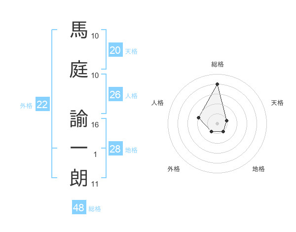 馬庭 諭一朗さんの総格は48画の4点!