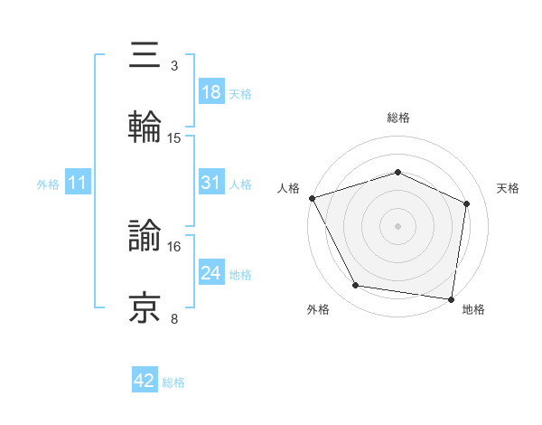 三輪 諭京さんを姓名の画数から五運を鑑定
