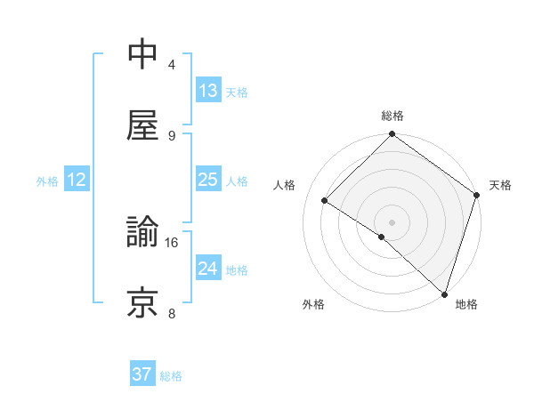 中屋 諭京さんを姓名の画数から五運を鑑定