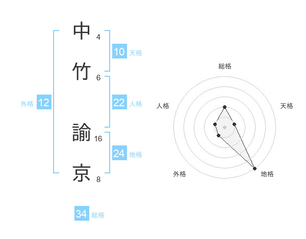 中竹 諭京さんの総格は34画の2点!