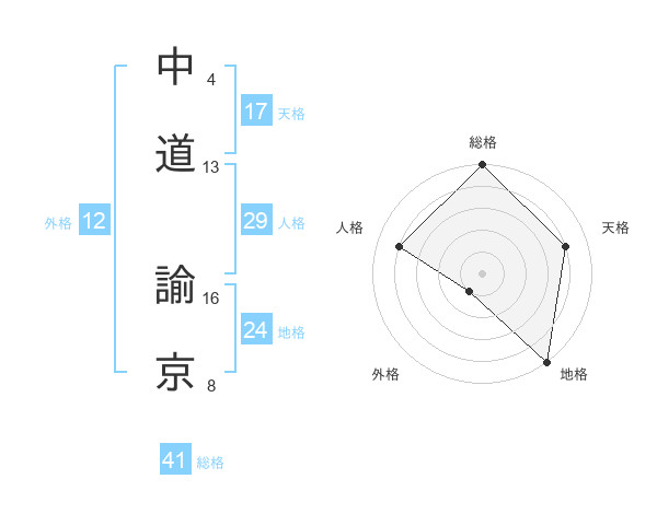 中道 諭京さんの天格は17画の4点!
