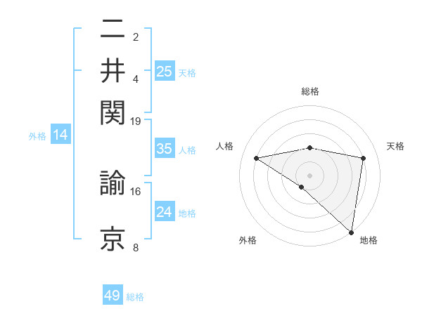 二井関 諭京さんを姓名の画数から五運を鑑定