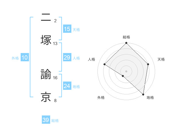 二塚 諭京さんを姓名の画数から五運を鑑定