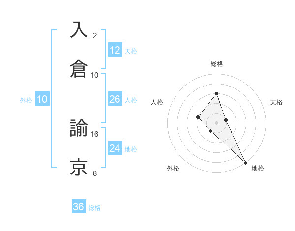 入倉 諭京さんを姓名の画数から五運を鑑定