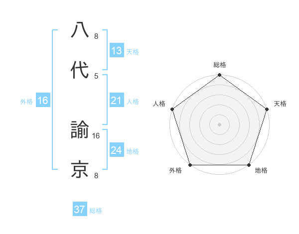 八代 諭京さんの総格は37画の5点!