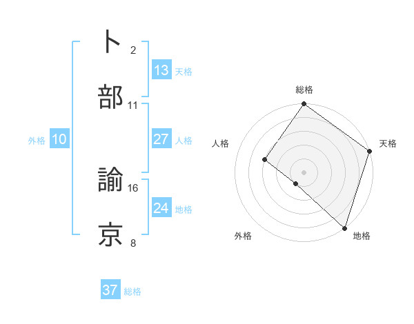 卜部 諭京さんを姓名の画数から五運を鑑定