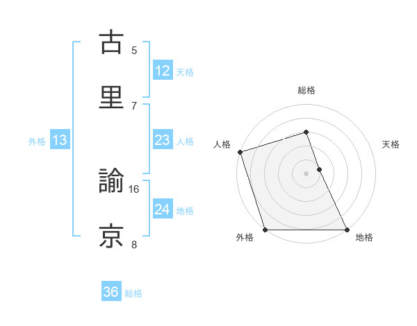 古里 諭京さんの外格は13画の5点!