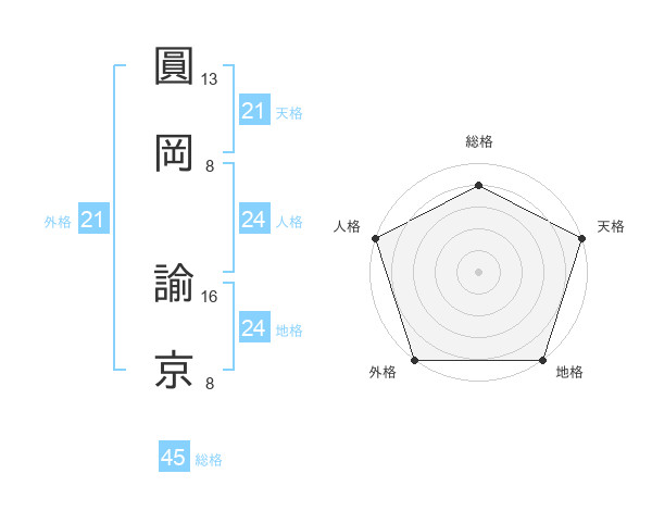 圓岡 諭京さんの天格は21画の5点!