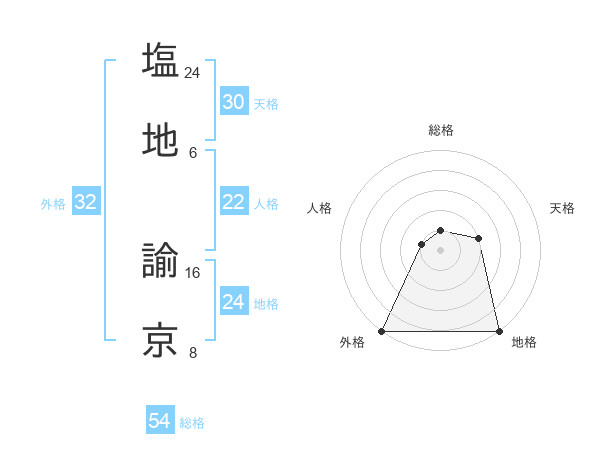 塩地 諭京さんの総格は54画の1点!