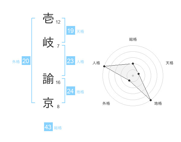 壱岐 諭京さんの総格は43画の2点!