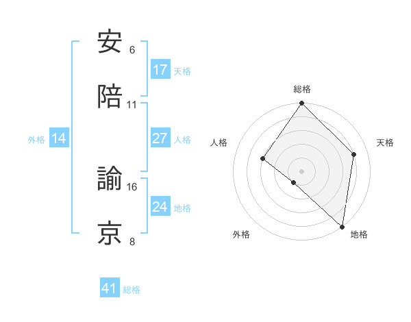 安陪 諭京さんを姓名の画数から五運を鑑定