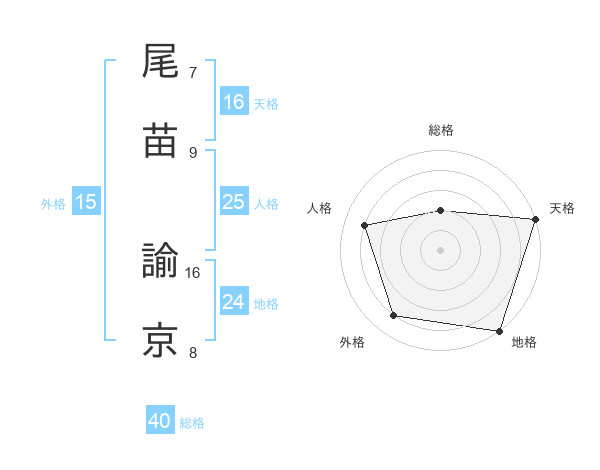 尾苗 諭京さんの外格は15画の4点!