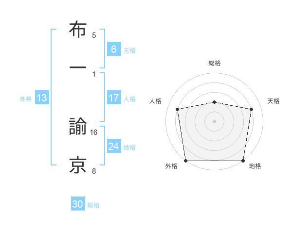 布一 諭京さんの総格は30画の2点!