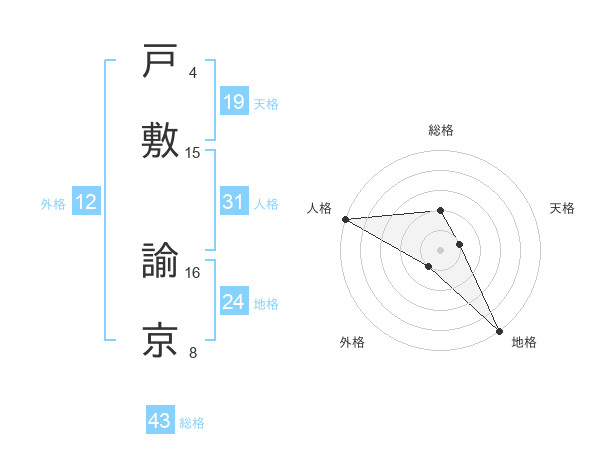 戸敷 諭京さんを姓名の画数から五運を鑑定