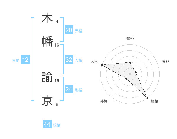 木幡 諭京さんの総格は44画の2点!