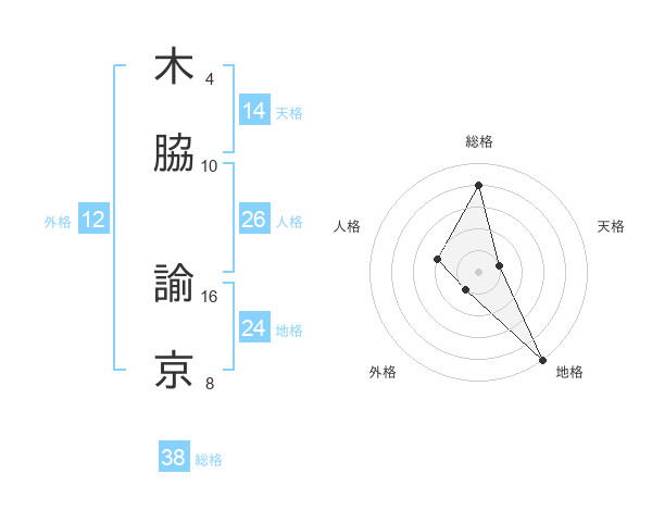 木脇 諭京さんの総格は38画の4点!