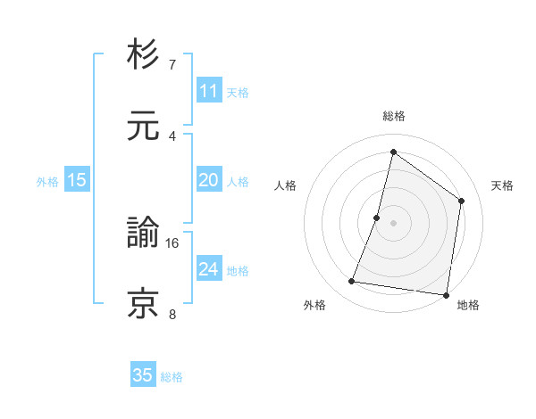 杉元 諭京さんの総格は35画の4点!
