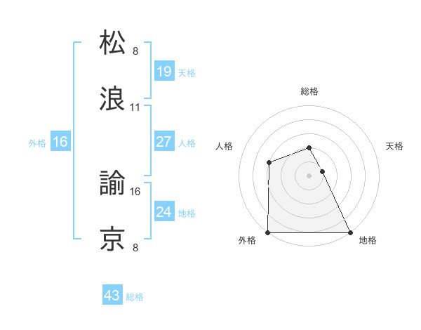松浪 諭京さんを姓名の画数から五運を鑑定