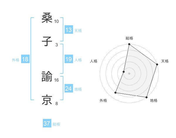 桑子 諭京さんの総格は37画の5点!