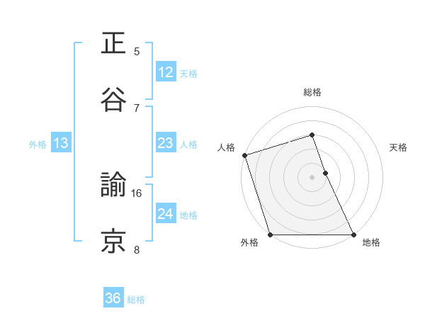 正谷 諭京さんを姓名の画数から五運を鑑定