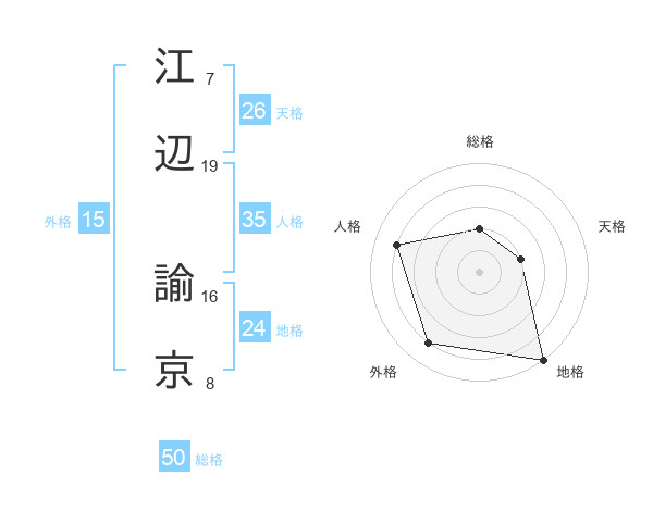 江辺 諭京さんを姓名の画数から五運を鑑定