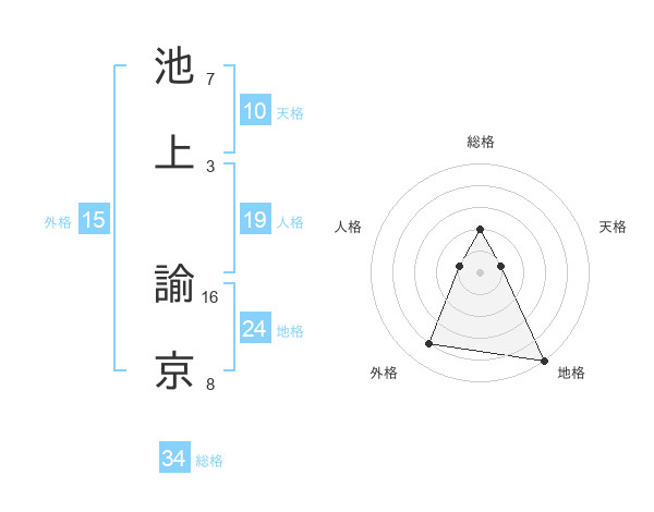 池上 諭京さんを姓名の画数から五運を鑑定