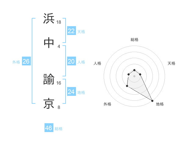 浜中 諭京さんを姓名の画数から五運を鑑定