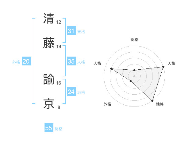 清藤 諭京さんの天格は31画の5点!