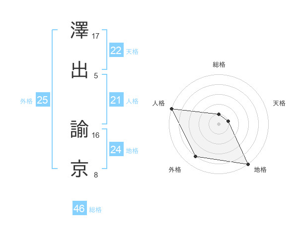 澤出 諭京さんの人格は21画の5点!