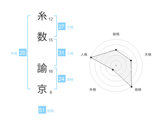 糸数 諭京さんを姓名の画数から五運を鑑定