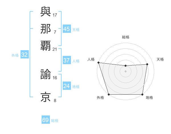與那覇 諭京さんを姓名の画数から五運を鑑定