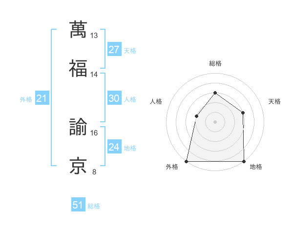 萬福 諭京さんを姓名の画数から五運を鑑定
