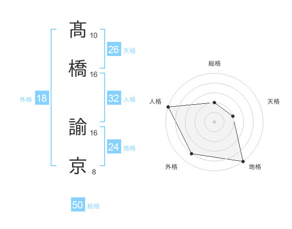 髙橋 諭京さんの総格は50画の2点!