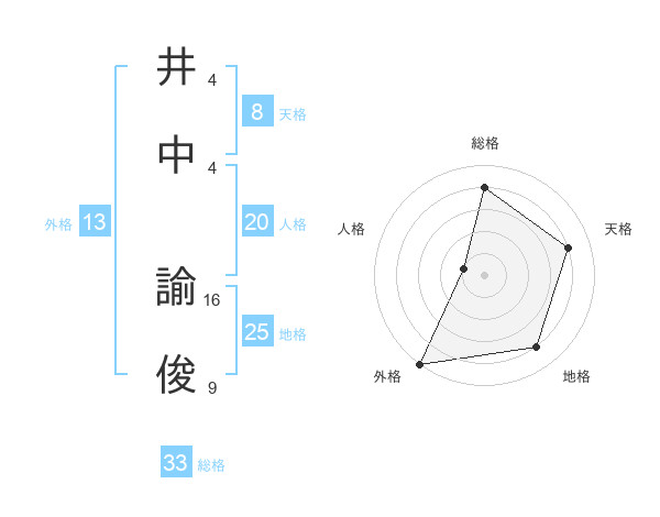井中 諭俊さんの地格は25画の4点!