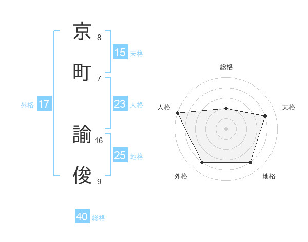 京町 諭俊さんを姓名の画数から五運を鑑定