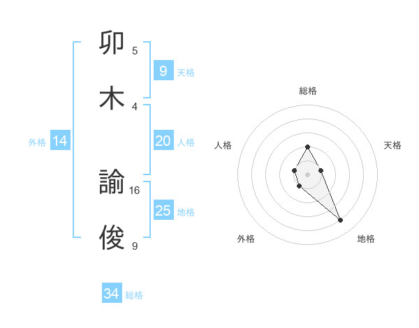 卯木 諭俊さんの地格は25画の4点!