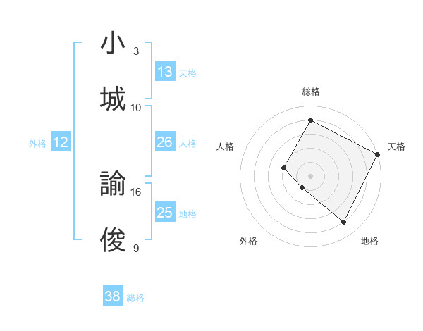 小城 諭俊さんを姓名の画数から五運を鑑定