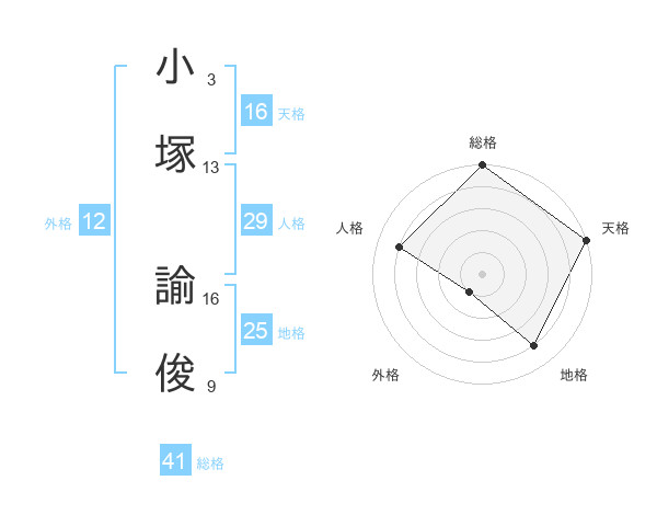小塚 諭俊さんの天格は16画の5点!