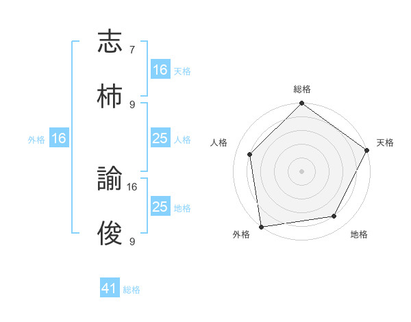 志柿 諭俊さんの天格は16画の5点!