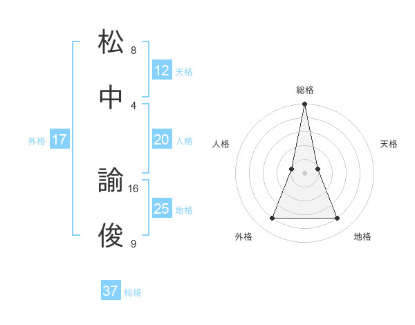 松中 諭俊さんを姓名の画数から五運を鑑定