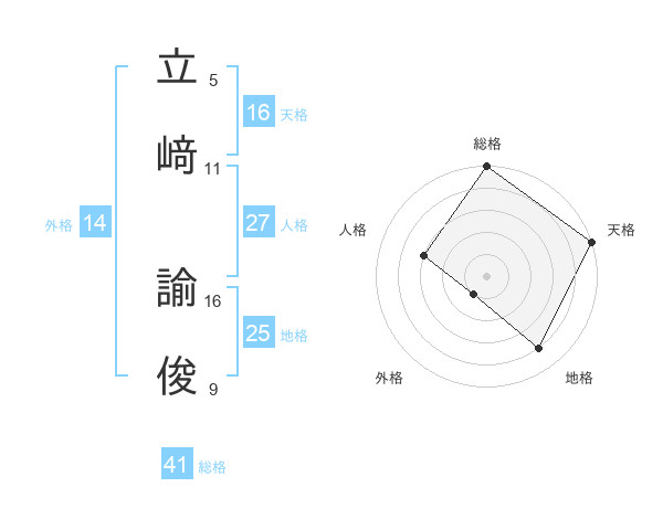 立﨑 諭俊さんを姓名の画数から五運を鑑定
