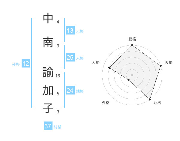 中南 諭加子さんの総格は37画の5点!