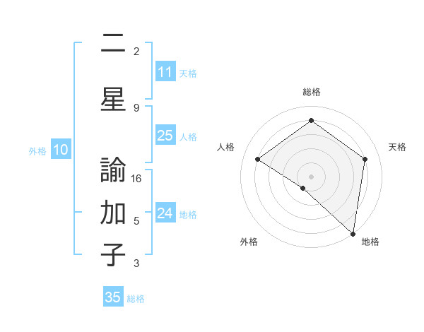 二星 諭加子さんの天格は11画の4点!