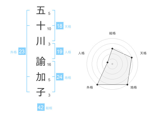 五十川 諭加子さんの外格は23画の5点!